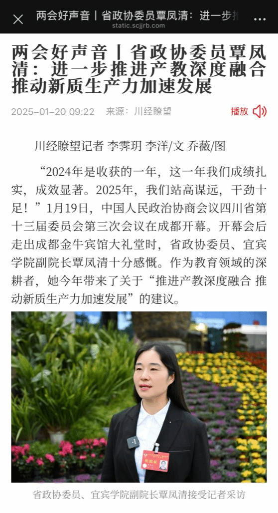 【聚焦四川兩會】覃鳳清委員建議:以新求質(zhì) 打造產(chǎn)教深度融合典型案例及四川樣板