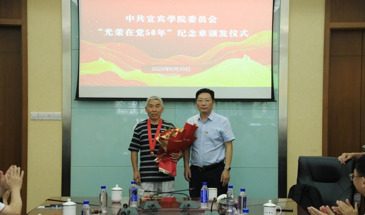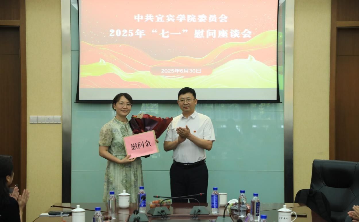 在慶祝中國共產(chǎn)黨成立104周年之際,6月30日下午,宜賓學(xué)院在江北校區(qū)圖書館第二會議室召開“七一”慰問座談會。學(xué)校黨委書記馬洪江,黨委副書記蔣道平出席座談會,向老黨員頒發(fā)“光榮在黨50年”紀(jì)念章并慰問黨員代表,傳遞黨組織的關(guān)懷與溫暖。