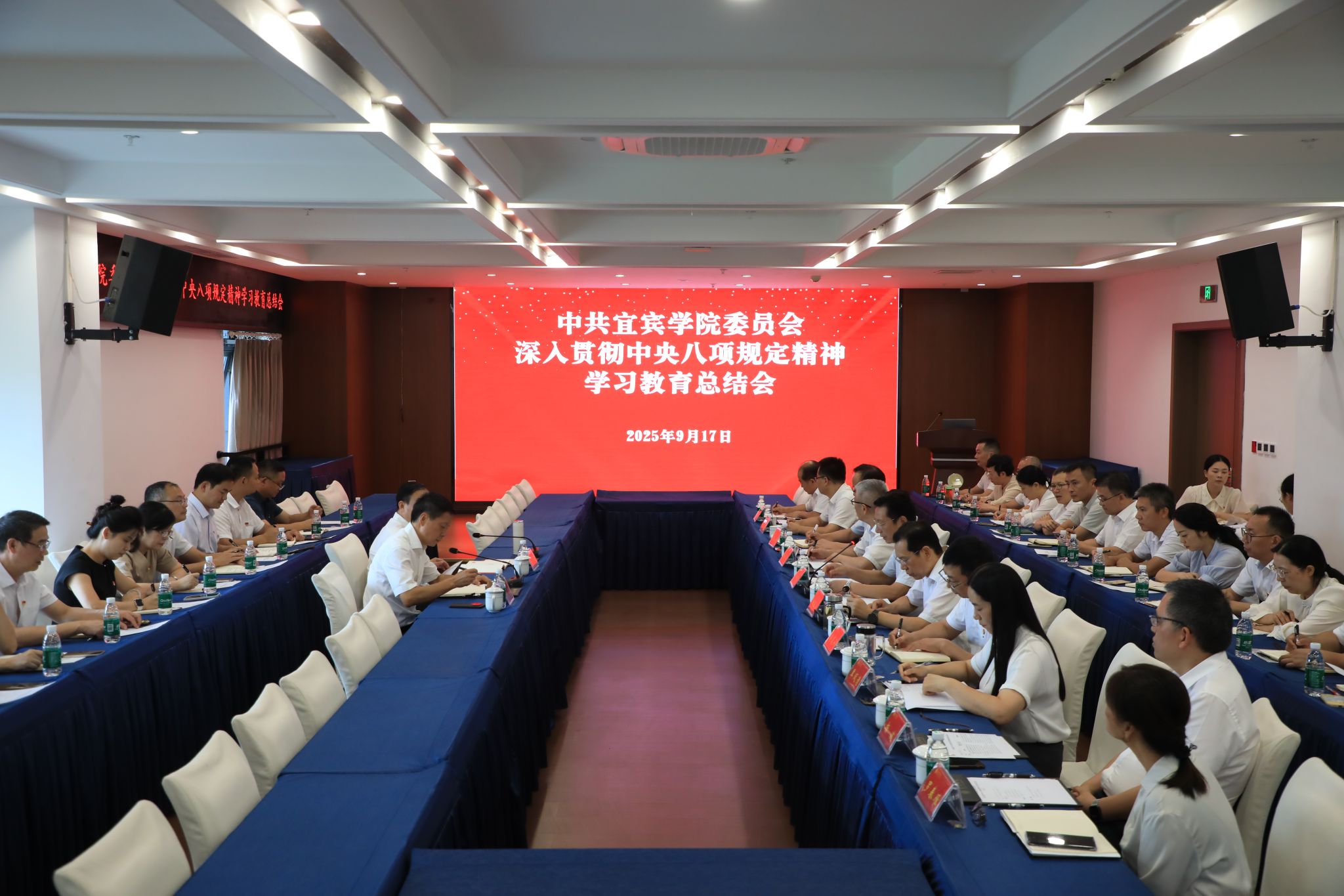 9月17日,宜賓學院在臨港校區二期行政樓201會議室召開深入貫徹中央八項規定精神學習教育總結會議。省委第五督導組、校領導出席會議,校黨委委員、各基層黨委主要負責人、學校學習教育工作專班成員參加會議。校黨委書記馬洪江主持會議并講話。