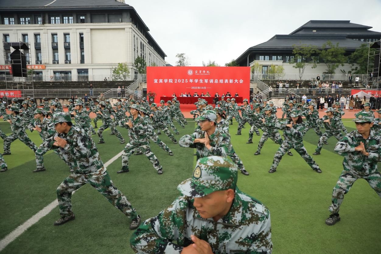 10月22日上午,宜賓學院2025年秋季學生軍訓總結表彰大會在臨港校區和江北校區(A區)同步舉行。學校校領導、黨委常委,承訓部隊領導出席,各二級學院(部)及機關職能部門負責人參會,與全體參訓學子共同見證軍訓成果。副院長覃鳳清,黨委常委、宣傳部部長陳世海主持表彰大會。