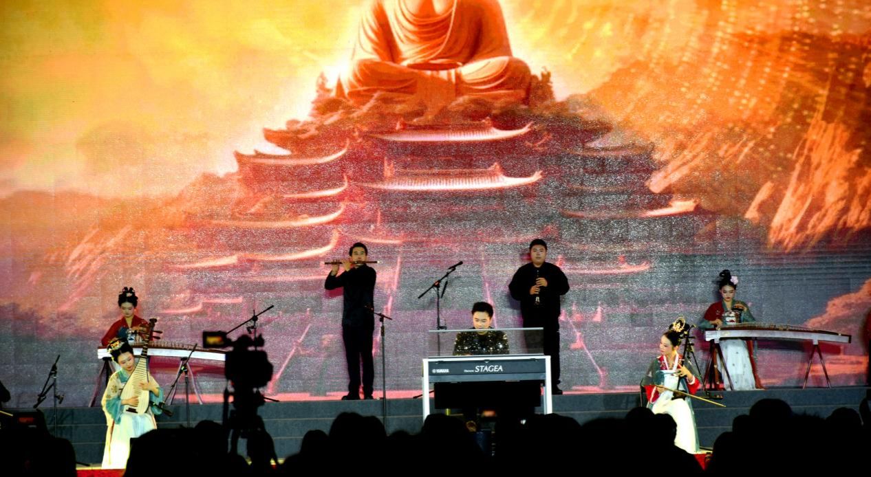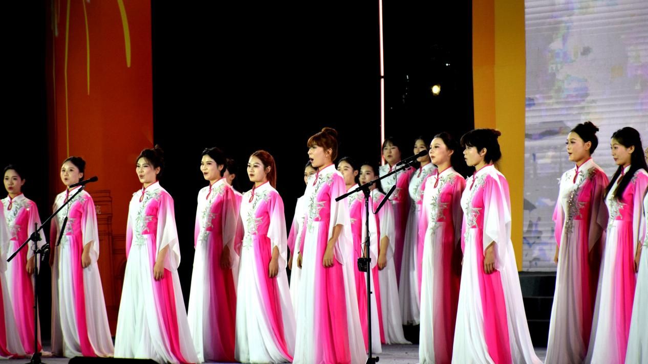 第二篇章“赤心鑄魂·薪火永傳”講述文化傳承與精神賡續(xù)。合唱《舟中曉望》展現(xiàn)了對(duì)傳統(tǒng)文化的歷久彌新;藏族舞《黨心》用豪邁舞姿與潔白哈達(dá),訴說(shuō)藏族人民為代表的各族同胞對(duì)黨的感恩之情;吟誦《鹿鳴》重現(xiàn)“呦呦鹿鳴,食野之蘋”的禮樂(lè)溫情,彰顯中華優(yōu)秀傳統(tǒng)文化底蘊(yùn);新民樂(lè)合奏《云境曲影》融合傳統(tǒng)民樂(lè)與西洋樂(lè)器,綻放東西方藝術(shù)碰撞的獨(dú)特魅力;歌伴舞《幸福中國(guó)一起走》以飽滿熱忱歌頌新時(shí)代,展現(xiàn)老一輩教育工作者的昂揚(yáng)風(fēng)貌,傳遞文化自信與時(shí)代精神。