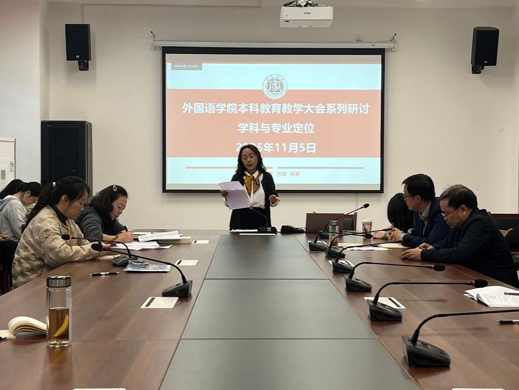 外國語學(xué)院圍繞“學(xué)科與專業(yè)定位”重點(diǎn)專題研討,聚焦本科人才培養(yǎng)的核心要素與關(guān)鍵環(huán)節(jié),進(jìn)行深入研討。會議通報(bào)了各專業(yè)取得的3項(xiàng)階段性成果,各專業(yè)明確了后續(xù)的建設(shè)重點(diǎn)。