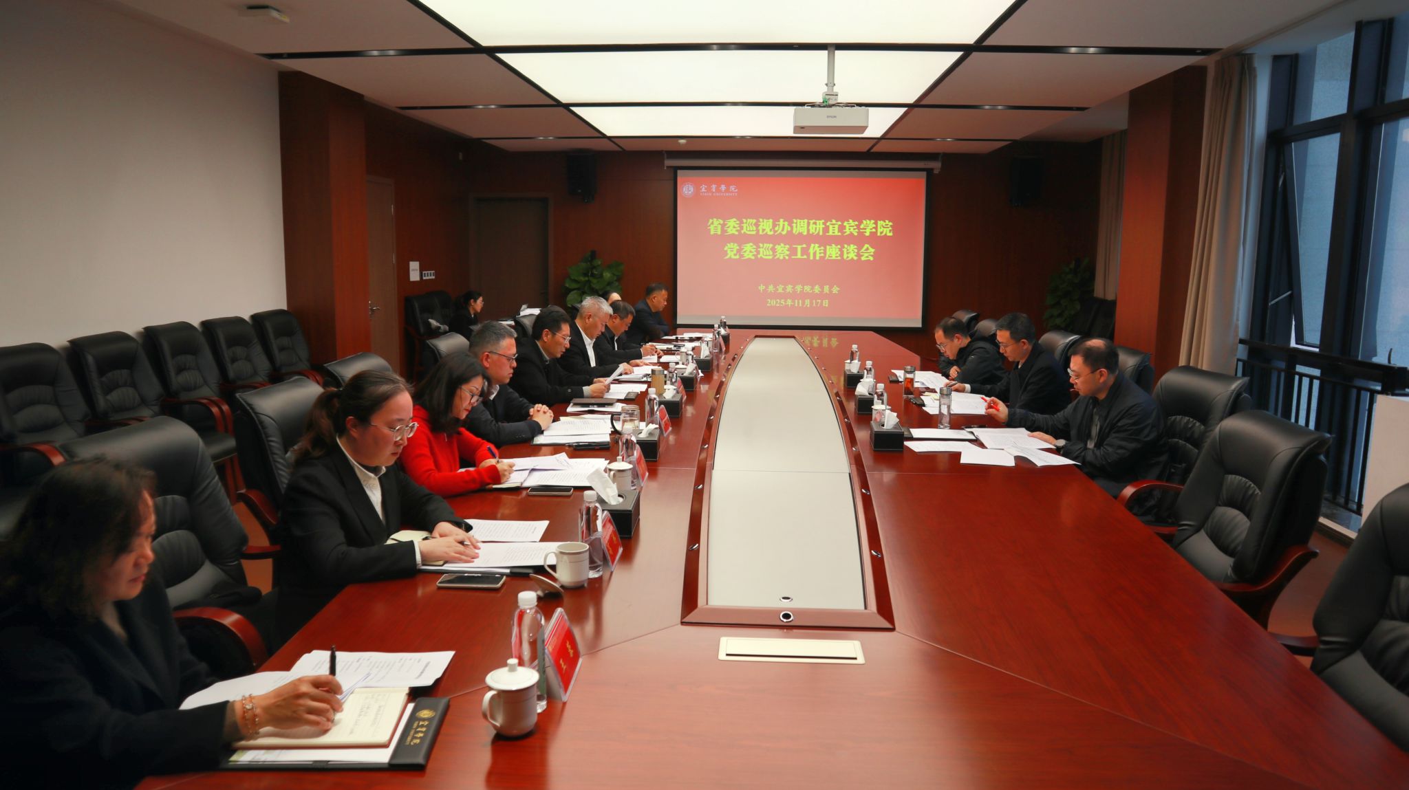 11月17日,省委巡視工作領(lǐng)導(dǎo)小組成員,省紀(jì)委常委、省委巡視辦主任賈璋煒到校調(diào)研指導(dǎo)巡察工作,省委巡視辦三處處長、二級巡視員茍玉竹,省委巡視辦三處一級主任科員鄧明及宜賓市委巡察工作領(lǐng)導(dǎo)小組成員,市紀(jì)委常委、市委巡察辦主任楊婷陪同調(diào)研。學(xué)校黨委巡察工作領(lǐng)導(dǎo)小組組長,黨委書記馬洪江,黨委巡察工作領(lǐng)導(dǎo)小組常務(wù)副組長,省紀(jì)委監(jiān)委駐校紀(jì)檢監(jiān)察組組長、黨委副書記、紀(jì)委書記徐其虎,黨委巡察工作領(lǐng)導(dǎo)小組成員,黨委第三輪巡察組組長、副組長,黨委巡察辦有關(guān)人員參加座談會。
