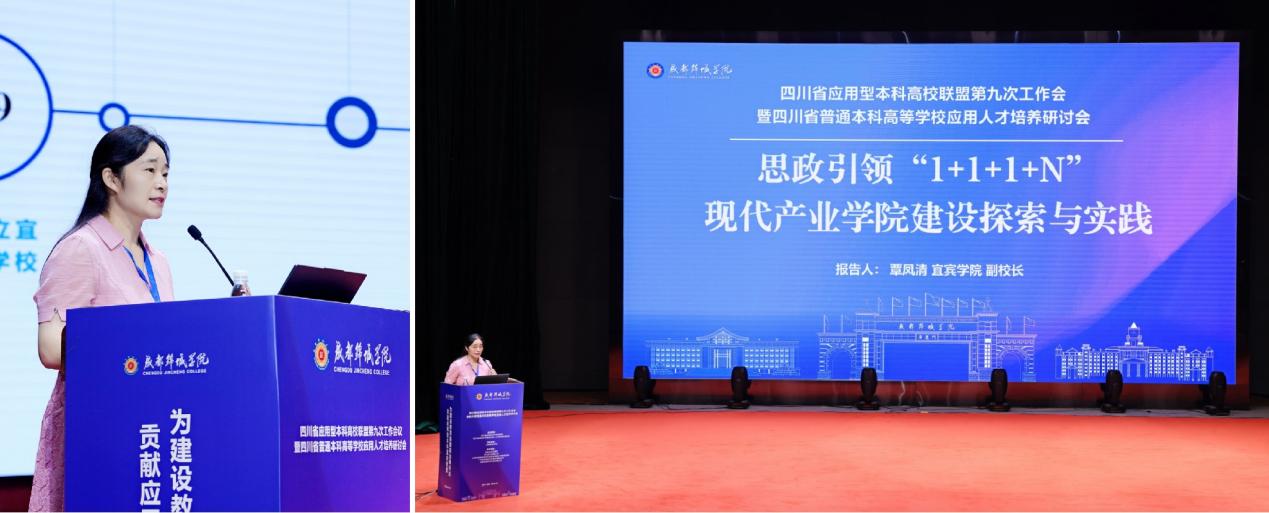 為深化應用型高等教育的理念與實踐研究,7月3-5日,四川省應用型本科高校聯盟第九次工作會暨四川省普通本科高等學校應用人才培養研討會在成都錦城學院召開。宜賓學院副院長覃鳳清率隊參會,并受邀作《思政引領“1+1+1+N”現代產業學院建設探索與實踐》的主題報告。