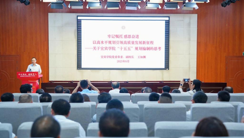 會上,王如淵作題為《牢記囑托 感恩奮進(jìn) 以高水平規(guī)劃引領(lǐng)高質(zhì)量發(fā)展新征程——關(guān)于宜賓學(xué)院“十五五”規(guī)劃編制的思考》的主旨報告。他從“十五五”規(guī)劃的戰(zhàn)略意義、編制原則、核心任務(wù)和落實措施四個方面,系統(tǒng)闡述了我校未來五年在人才培養(yǎng)、學(xué)科專業(yè)優(yōu)化、師資隊伍建設(shè)、校企協(xié)同創(chuàng)新、服務(wù)地方經(jīng)濟社會發(fā)展等方面的戰(zhàn)略布局和實施路徑,受到與會代表的高度關(guān)注。