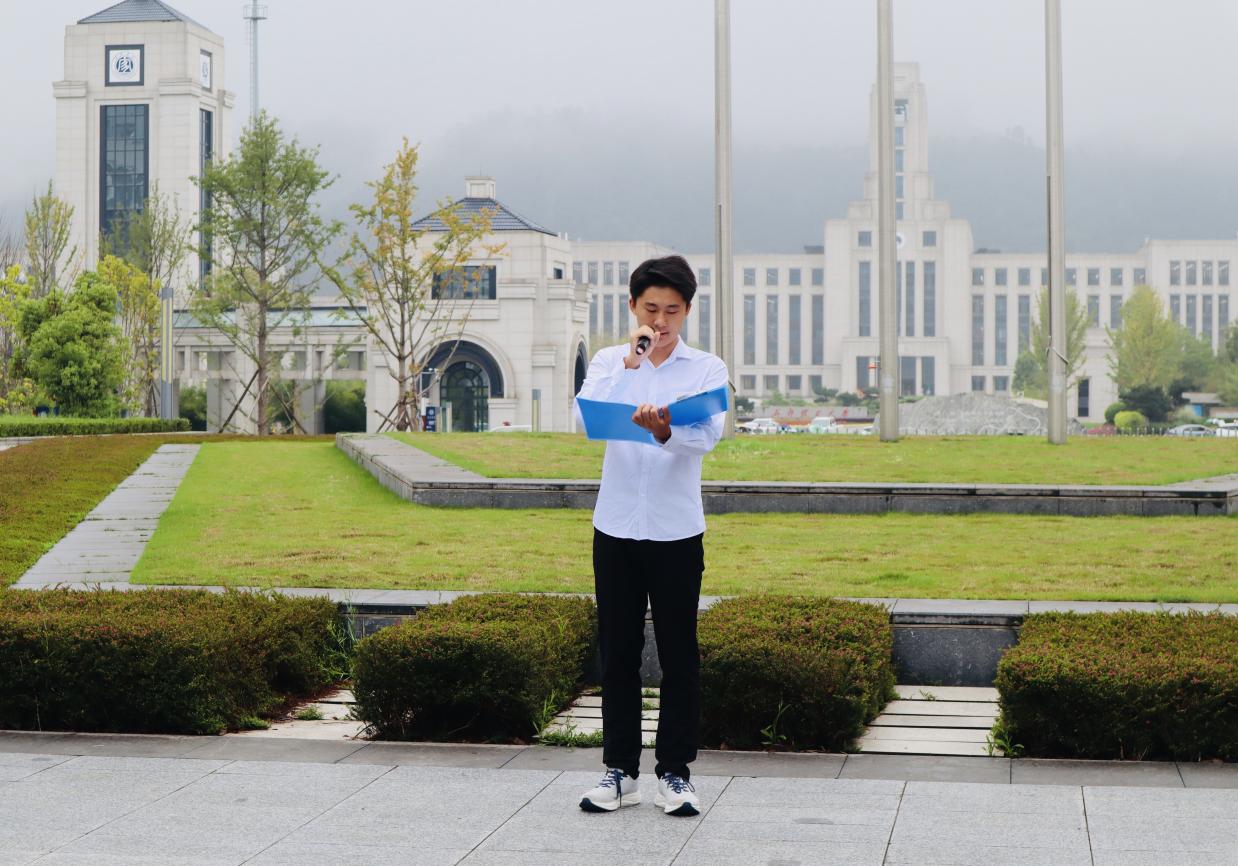 禮畢,宜賓學院教師教育學院鐘磬音、數理學院寧益磊作為學生代表發言。兩位代表共同號召同學們將個人理想融入祖國發展大局,真摯的情感與鏗鏘的誓言引發全場共鳴,讓“強國復興有我”的種子深深扎根。
