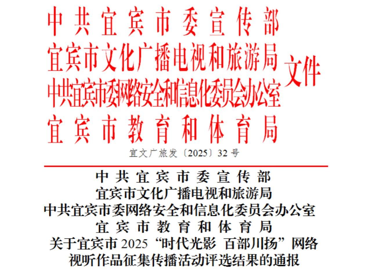 近日,宜賓市2025“時代光影 百部川揚”網絡視聽作品征集傳播活動作品征集、評選與選送工作已圓滿完成。宜賓學院黨委宣傳部積極組織師生參與,共有六部作品從全市203件征集作品中脫穎而出,獲得佳績。
