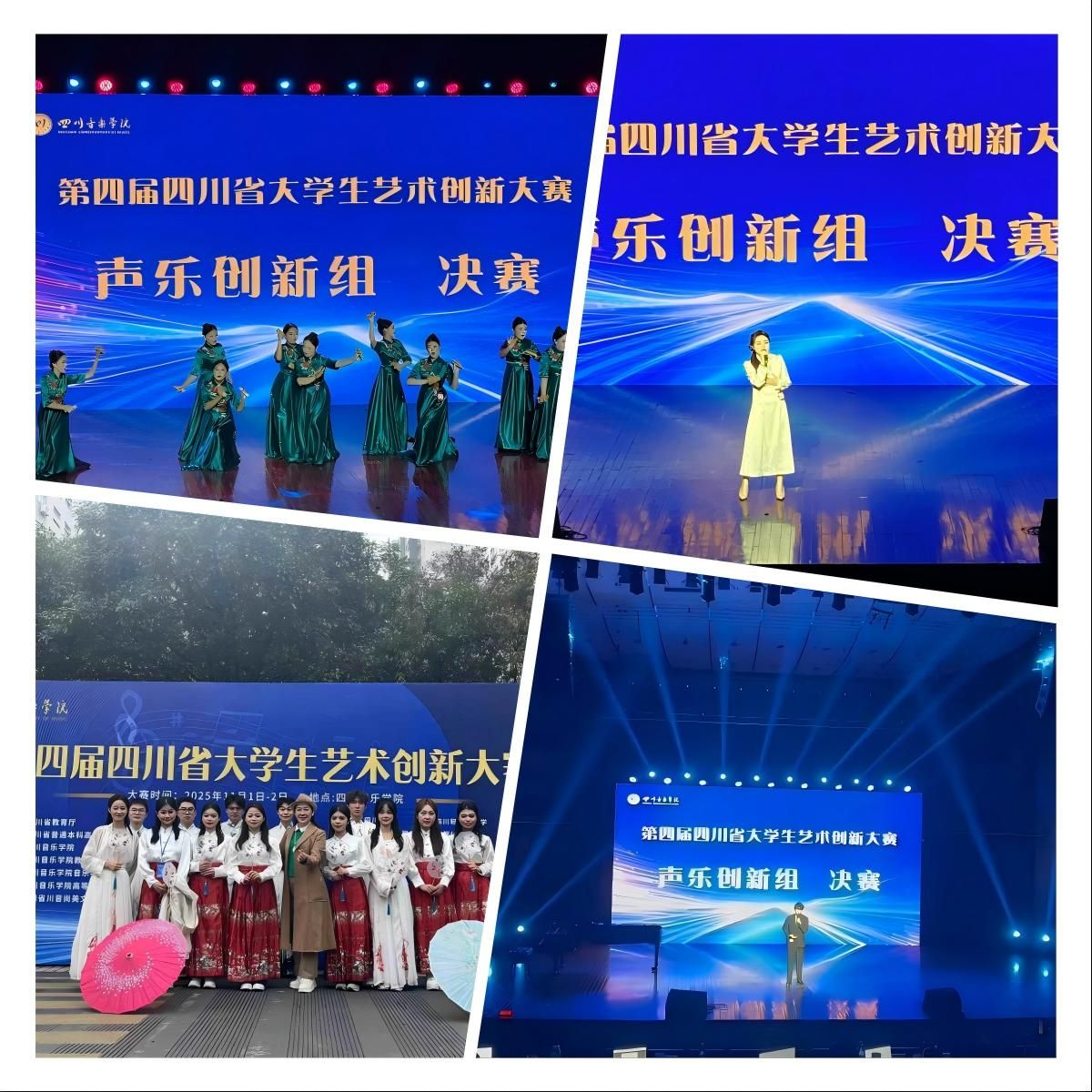 本次大賽由四川省教育廳主辦、四川音樂學院承辦,吸引了全省多所高校參賽,設有“聲樂創新組”和“音樂創業組”兩個類別。經過初賽選拔,音表學院共有5個作品入圍省級現場展示環節,充分展現了學院的教學實力與創新氛圍。