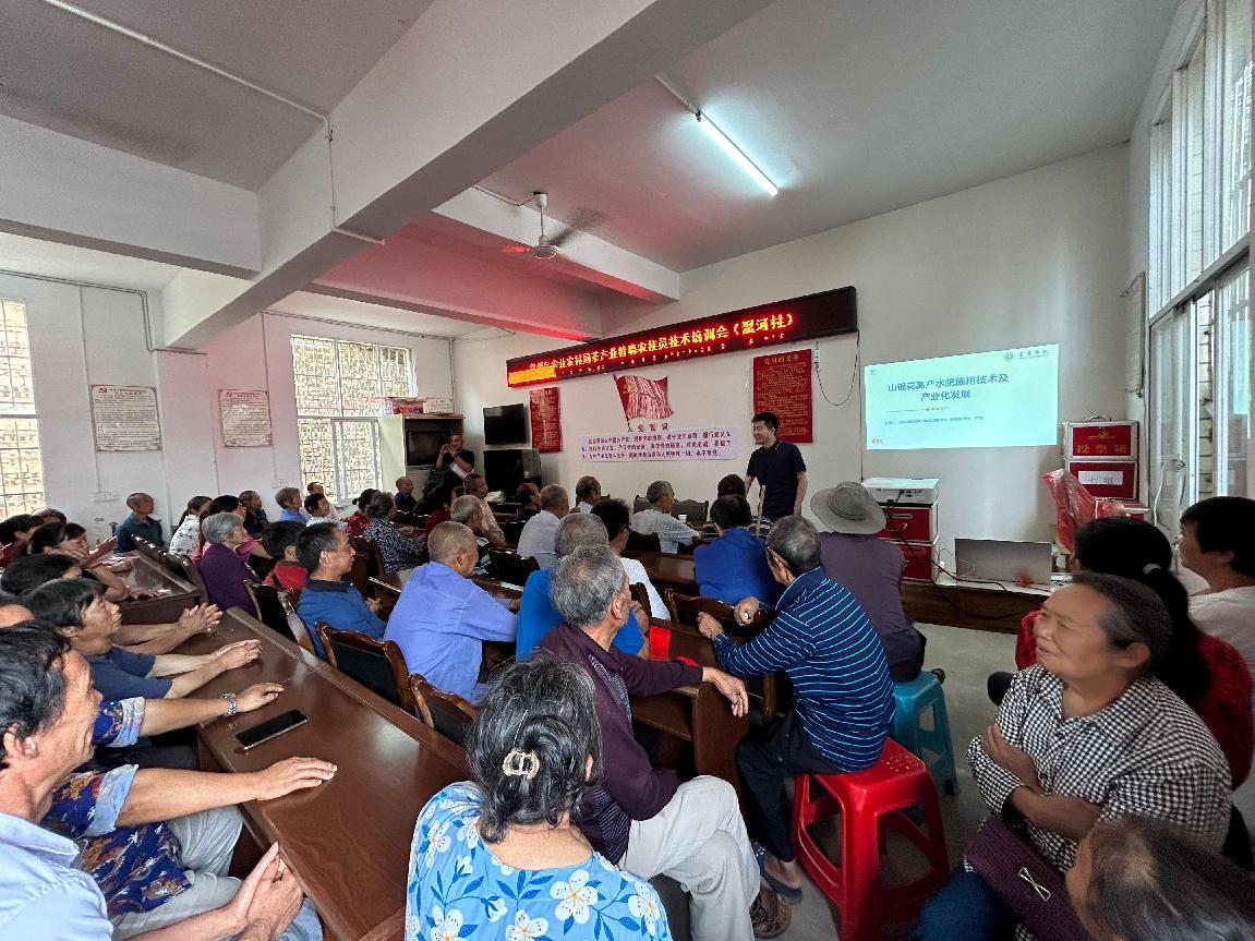 蕨溪鎮作為宜賓市山銀花傳統種植區,近年來因品種退化、管護技術不足等問題,導致植株成活率低、經濟效益下滑。針對這一現狀,培訓團隊專家從品種選育、土壤改良、高效水肥施用、田間管理及病蟲害防治等環節展開系統講解,并針對當地種植過程中發現的種植成活率低、加工品質不穩定等問題提出解決方案。參訓農戶紛紛表示:“以前靠經驗種花,現在掌握了科學方法,對今后的栽培種植更有信心了。”