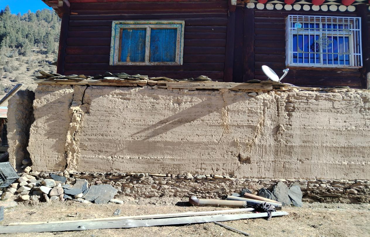 去年年底,宜賓學(xué)院派駐新龍縣拉日馬鎮(zhèn)松多頂村的駐村干部徐慎穎傳來緊急消息:村民登巴達(dá)子的住宅出現(xiàn)裂縫并伴有異常聲響,屋角崩裂坍塌、房柱傾斜,經(jīng)專業(yè)人員評估為C級危房。當(dāng)時凜冬已至,登巴達(dá)子一家五口被迫撤離住宅,亟待重建住房以抵御嚴(yán)寒。登巴達(dá)子家庭經(jīng)濟(jì)狀況極為拮據(jù)。家中兩位女兒分別處于高中就讀和闌尾炎術(shù)后治療階段,家庭無牲畜飼養(yǎng),僅靠采集蟲草和菌類維持生計,收入微薄且不穩(wěn)定,幾乎沒有存款。即便當(dāng)?shù)卣峁┝私ǚ垦a(bǔ)貼,他們?nèi)孕杌I措部分重建費(fèi)用,這讓本就困難的家庭陷入了絕望。