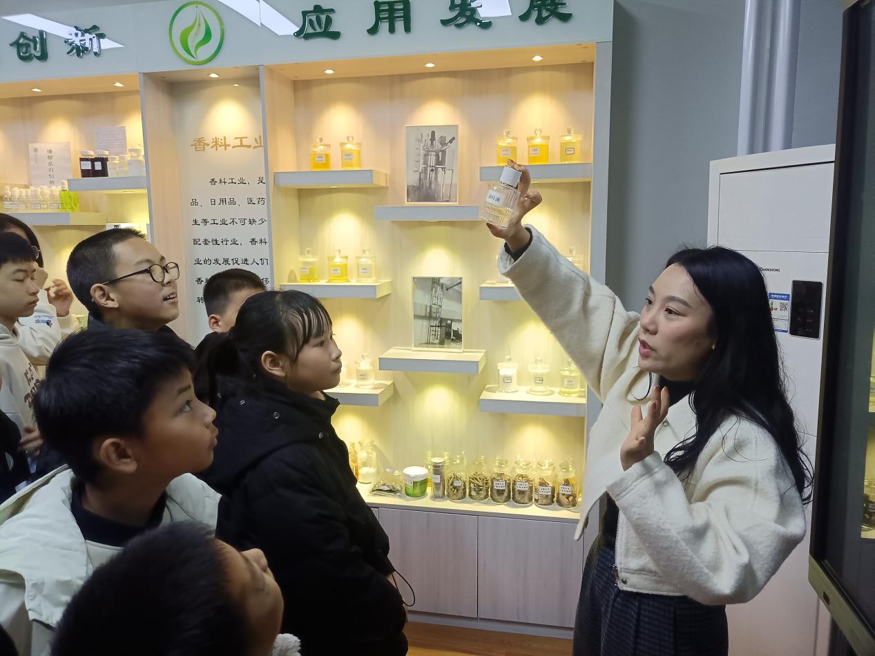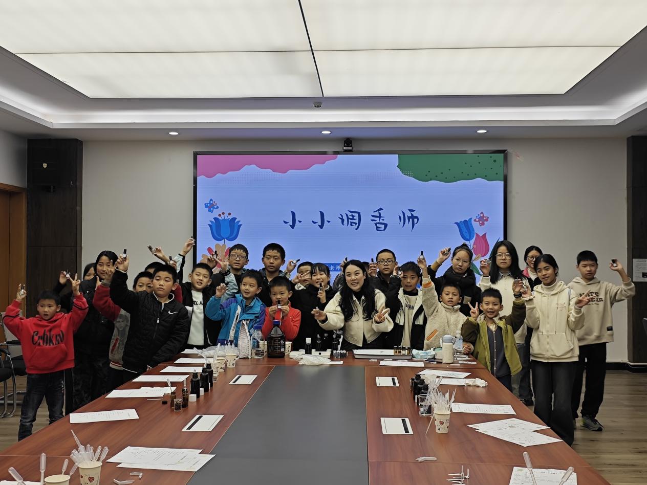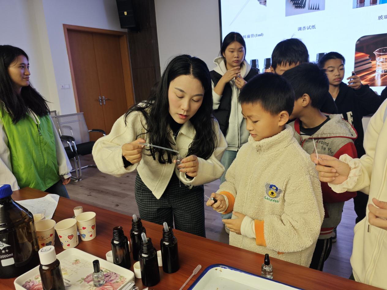 隨后的“解密香料王國”環(huán)節(jié)中,孩子們化身“小小調(diào)香師”,在楊麗老師指導(dǎo)下認(rèn)識芳香植物,探究香味產(chǎn)生原理。通過聞香、識香、調(diào)香等步驟,親手制作自己的專屬香水,在調(diào)動嗅覺感官的過程中,直觀感受自然科學(xué)與日常生活的緊密聯(lián)系。活動尾聲,孩子們展示作品、分享研學(xué)心得,為本次研學(xué)活動畫上圓滿句號。