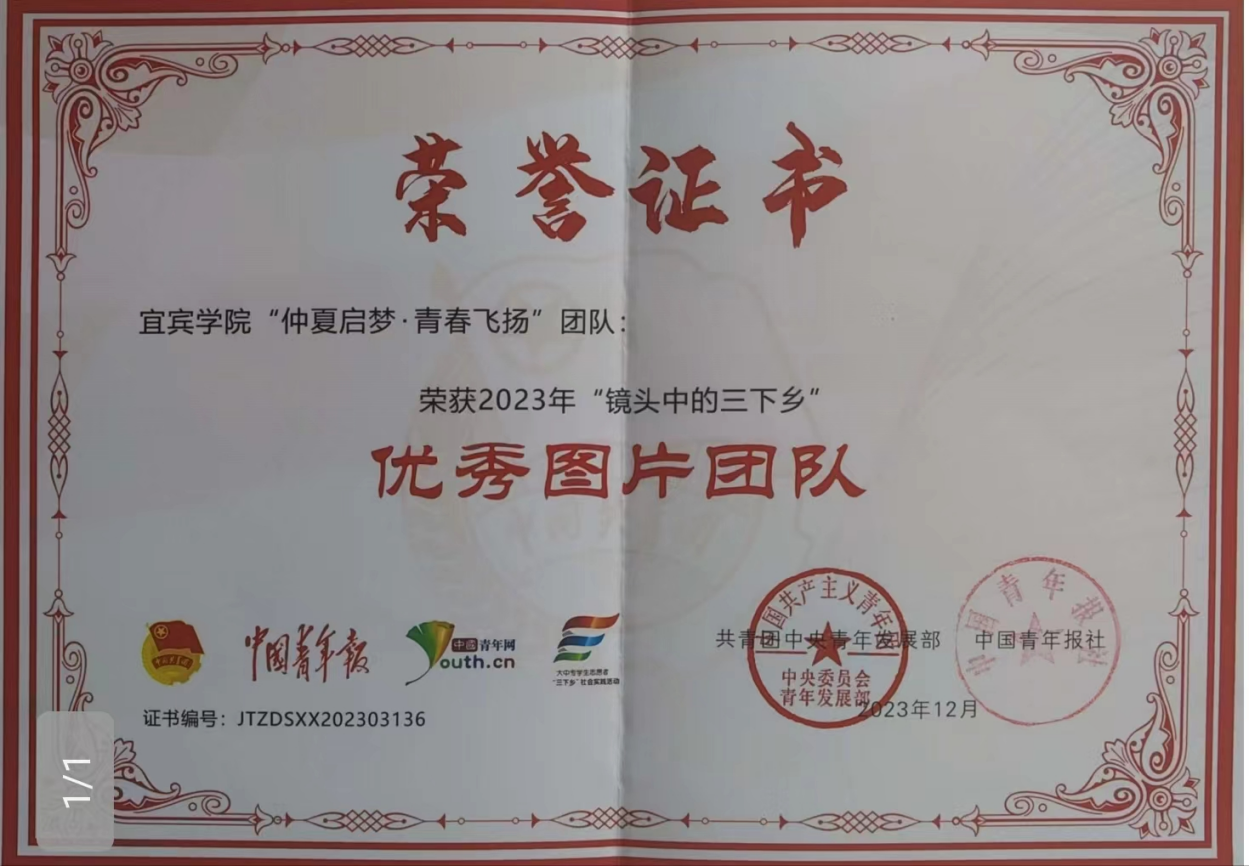 為充分展示2023年全國大中專學生志愿者暑期“三下鄉”社會實踐活動成果,共青團中央青年發展部、中國青年報、中國青年網共同舉辦2023年全國大中專學生志愿者暑期文化科技衛生“三下鄉”社會實踐“鏡頭中的三下鄉”征集活動。經報審核、作品發布、網絡展示、綜合評審等環節,遴選出200個優秀組織單位、154支優秀文字報道團隊、155支優秀圖片報道團隊、141支優秀視頻報道團隊、111名優秀指導教師、111名優秀通訊員。其中,宜賓學院“仲夏啟夢 青春飛揚”三下鄉社會實踐團隊榮獲2023年“鏡頭中的三下鄉”優秀圖片團隊。