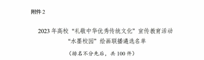 近日,教育部辦公廳公布2023年高校“禮敬中華優秀傳統文化”宣傳教育活動結果,宜賓學院學生創作作品《水墨宜院》成功入選2023年高校“禮敬中華優秀傳統文化”宣傳教育活動“水墨校園”繪畫聯播。