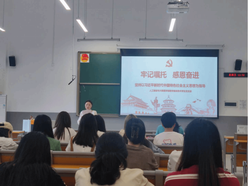 為深入學(xué)習(xí)貫徹習(xí)近平新時(shí)代中國(guó)特色社會(huì)主義思想,讓黨員學(xué)生把習(xí)近平新時(shí)代中國(guó)特色社會(huì)主義思想轉(zhuǎn)化為堅(jiān)定理想、錘煉黨性和指導(dǎo)實(shí)踐、推動(dòng)工作的強(qiáng)大力量,5月10日中午,人工智能與大數(shù)據(jù)學(xué)部黨總支學(xué)生黨支部在宜賓學(xué)院臨港校區(qū)六棟教室內(nèi)開(kāi)展堅(jiān)持以習(xí)近平新時(shí)代中國(guó)特色社會(huì)主義思想為指導(dǎo)—— “牢記囑托、感恩奮進(jìn)”主題黨課。學(xué)生黨支部書(shū)記林文嬌、雷斯博、許煒萍、劉利紅及全體學(xué)生黨員共同參與。