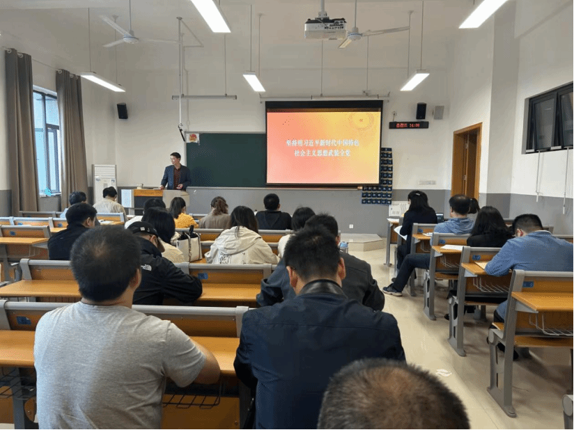 為深入開展學習貫徹習近平新時代中國特色社會主義思想主題教育,5月10日下午,國際應用技術學部黨總支書記潘樹林在臨港3312教室以“堅持用習近平新時代中國特色社會主義思想武裝全黨”為主題,為全體教師黨員講授專題黨課。