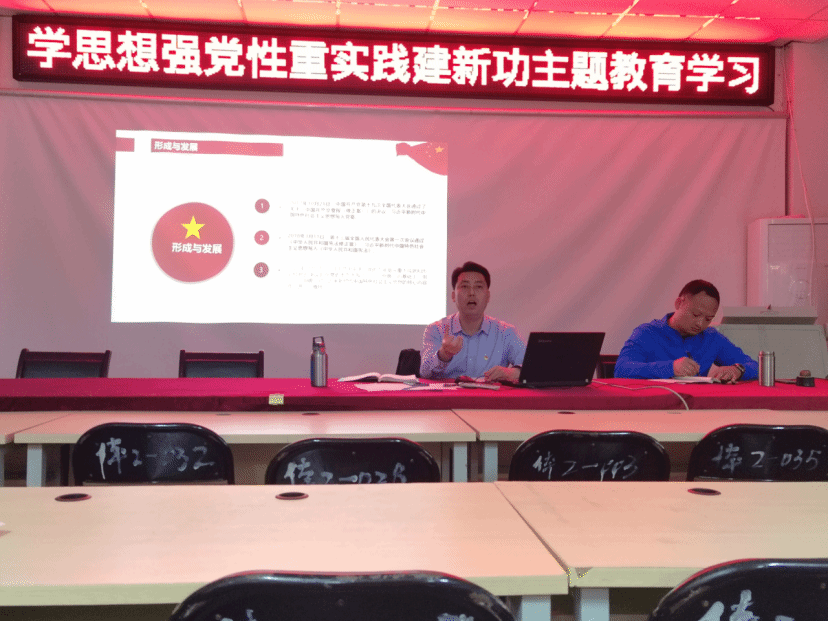 5月10日下午,體育與大健康學院在行健樓二樓會議室開展了“學思想、強黨性、重實踐、建新功”主題教育專題黨課。本次黨課由體育與大健康學院黨總支副書記串凱主講,體育與大健康學院全體師生黨員參加。