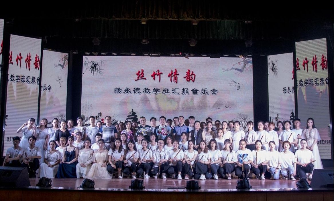 楊永德不僅積極推廣笛簫文化,作為高校教師,他始終將人才培養放在核心位置,他表示“要鼓勵學生上講臺、上舞臺、闖賽場、做項目?!彼鞒滞瓿啥囗椊谈恼n題,構建“1+1+X”教學體系,打造《中小學課堂小樂器》課程思政示范課程,探索“五位一體”創新應用型音樂人才培養模式。以實踐反哺教學是他一貫堅持的理念。他積極對接文旅單位,推動學生參與文旅演出,帶隊完成多項大型演出任務,顯著提升學生的舞臺表現與社會適應能力。在他的悉心指導下,學生獲國家級大創項目2項、省級2項,研究項目在創業競賽中屢獲佳績;2025年,他帶領學生參與央視紀錄片《沿著緯度聽中國》節目錄制,充分展現了宜賓學院學子的專業素養與藝術風采。